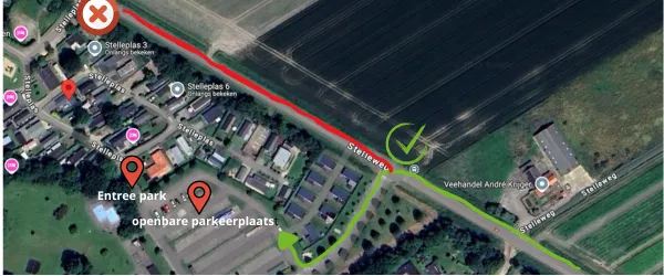 ➡️ Neem daarom altijd de eerste afslag naar het park aan de Stelleweg.