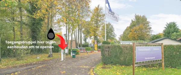 Bij aankomst kun je nog niet met de auto het park oprijden, omdat de slagboom alleen opent met een toegangsdruppel. Deze ligt in het sleutelkastje bij het huisje, samen met de Bold Clicker voor de voordeur.